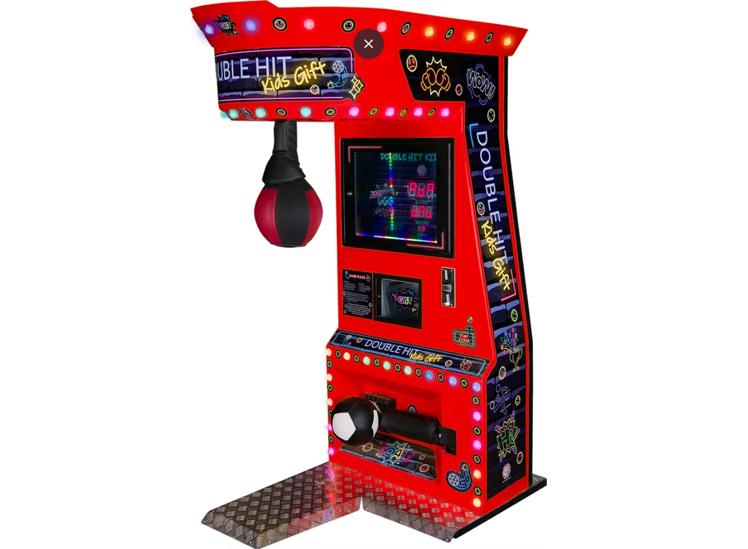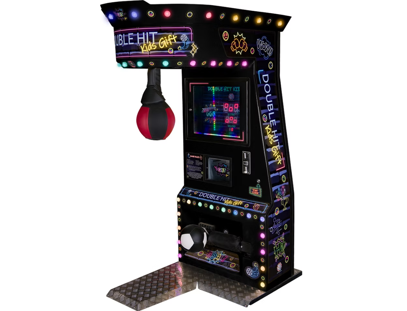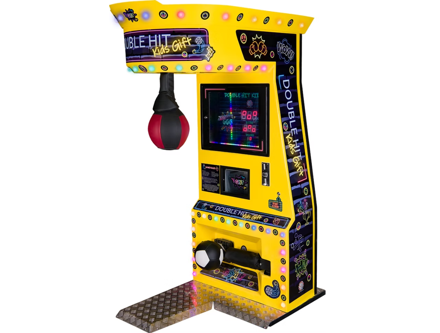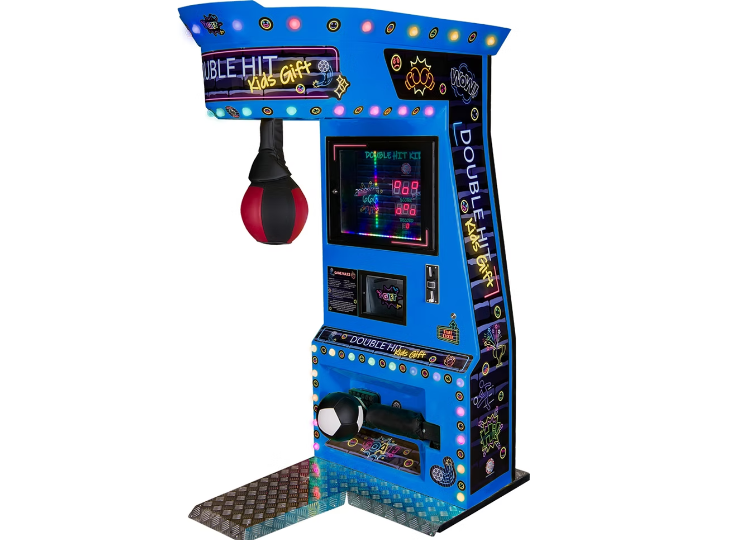 Το Double Hit Kids είναι ένα σύγχρονο arcade attraction τύπου boxing machine, σχεδιασμένο ειδικά για παιδιά. Με εντυπωσιακό design, φωτισμό LED και ενσωματωμένη οθόνη, προσφέρει μια διαδραστική και διασκεδαστική εμπειρία που τραβά άμεσα την προσοχή.