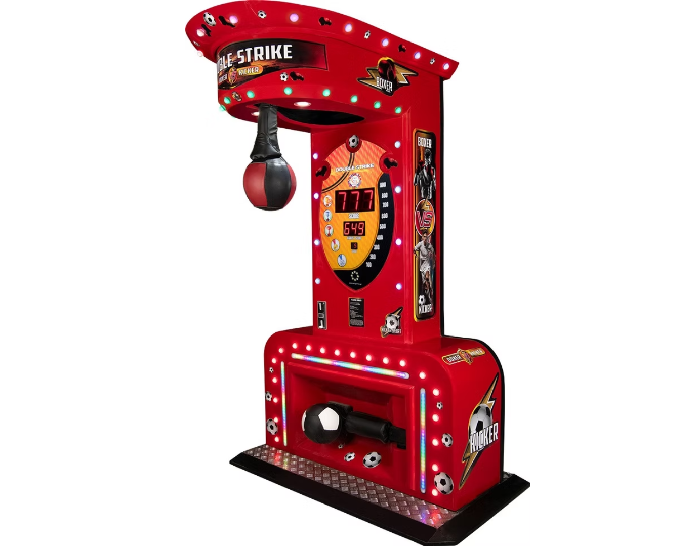 Το Double Strike είναι ένα εντυπωσιακό arcade attraction τύπου boxing machine, σχεδιασμένο για να προσφέρει έντονη εμπειρία δύναμης και ανταγωνισμού. Με δυναμικό design, φωτισμό LED και θεματικά στοιχεία “football / sport”, ξεχωρίζει άμεσα και τραβά την προσοχή σε κάθε χώρο.