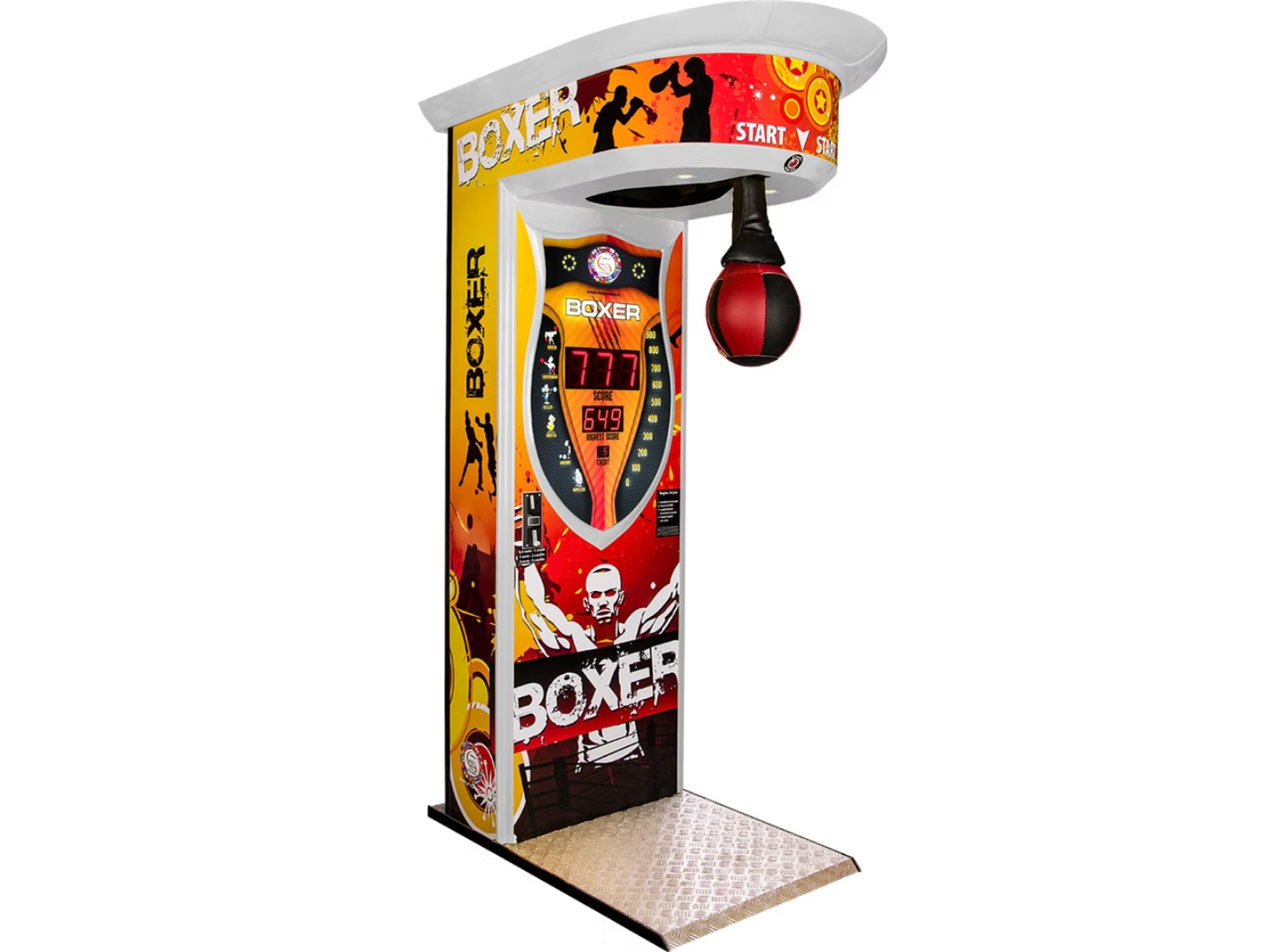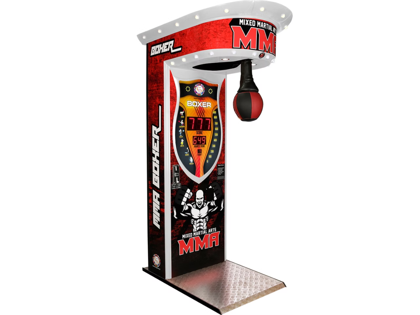Το Standard Boxer είναι ένα κλασικό arcade attraction τύπου boxing machine, σχεδιασμένο για να προσφέρει δυναμική εμπειρία δύναμης και ανταγωνισμού. Με επιθετικό design “MMA theme”, φωτισμό LED και εντυπωσιακή πρόσοψη, τραβά άμεσα την προσοχή σε κάθε χώρο.